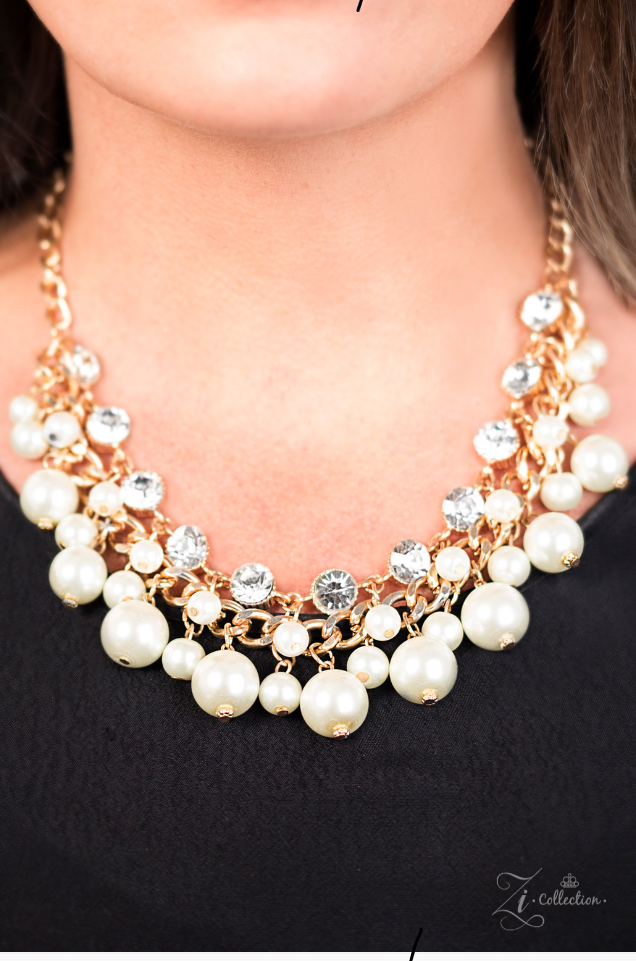 A row of dramatic white rhinestones gives way to a strand of chunky gold chain and row after row of pearlescent fringe. The stacked rows join together, creating flirty movement. Features an adjustable clasp closure.