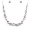 Pearly silver and glittery white crystal-like beads are threaded along the bottom of an elongated silver chain. The beads decrease in size as they climb the chain, while sparkling accents are sprinkled between them for a glamorous finish. Features an adjustable clasp closure.