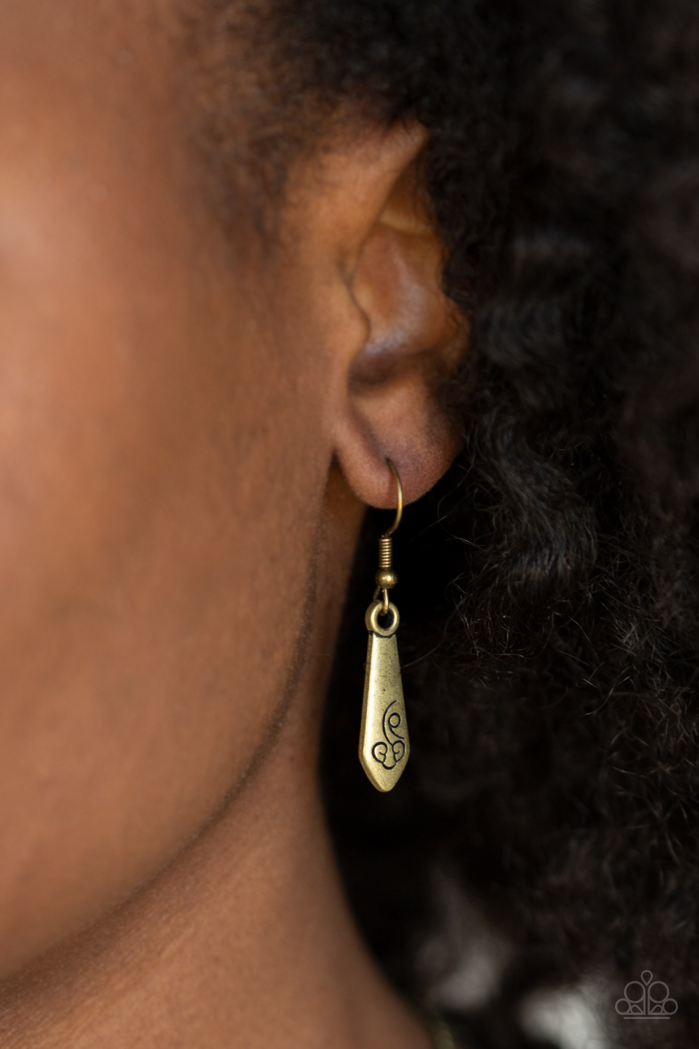 A collection of antiqued brass plates connects below the collar, joining into an elaborate pendant. The floral dotted frames give way to sections of brass beaded fringe, adding hints of movement to the tribal inspired piece. Features an adjustable clasp closure.
