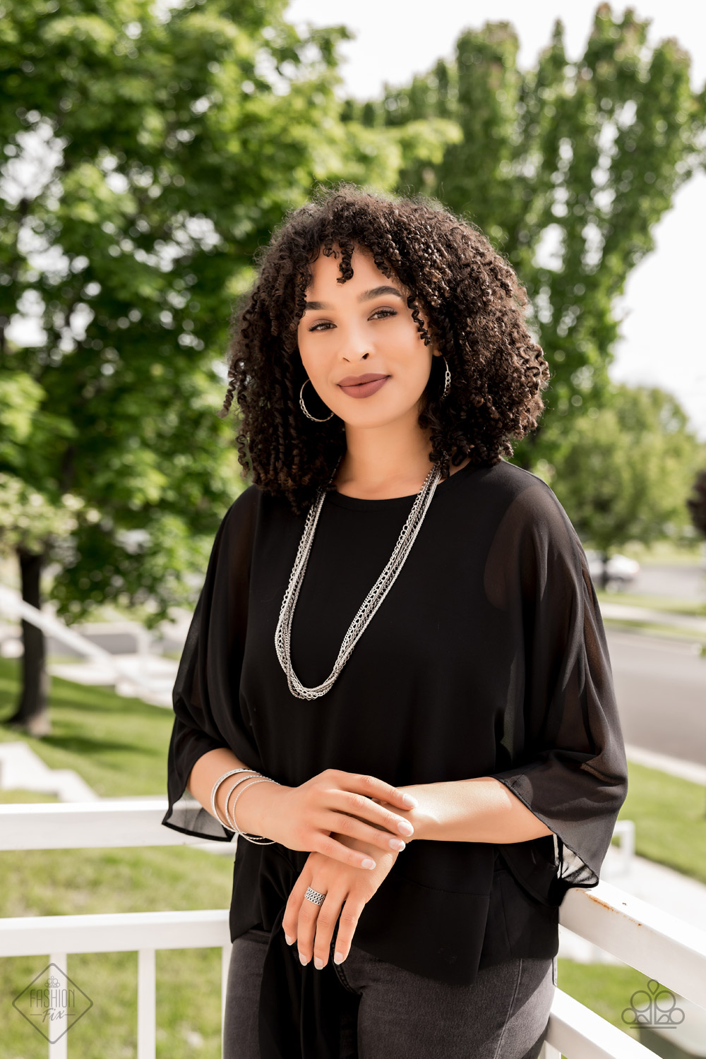 Featuring an array of chain-like and tribal inspired patterns, a collection of mismatched silver bangles slides up and down the wrist for an edgy look.