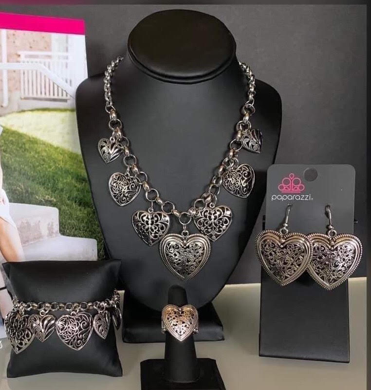 Swirling with frilly floral filigree, an ornate silver heart frame sits charmingly atop the finger to create a romantic statement piece. Features a stretchy band for a flexible fit.