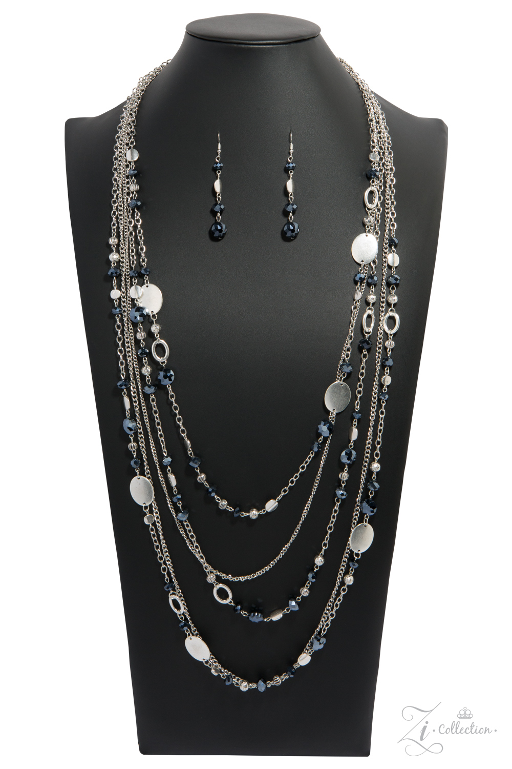 A cascade of shimmery silver chains and sleek metallic accents delicately drapes across the chest. A variety of midnight blue beading brushed in a shimmery metallic finish is sprinkled throughout the design in a breathtaking finish. Features an adjustable clasp closure.