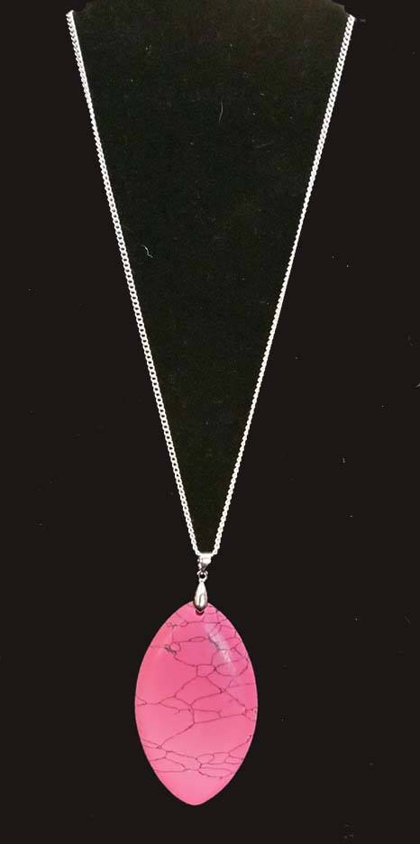 A refreshing pink crackle stone hangs at the bottom of a lengthened silver chain for a whimsical look. Features an adjustable clasp closure.