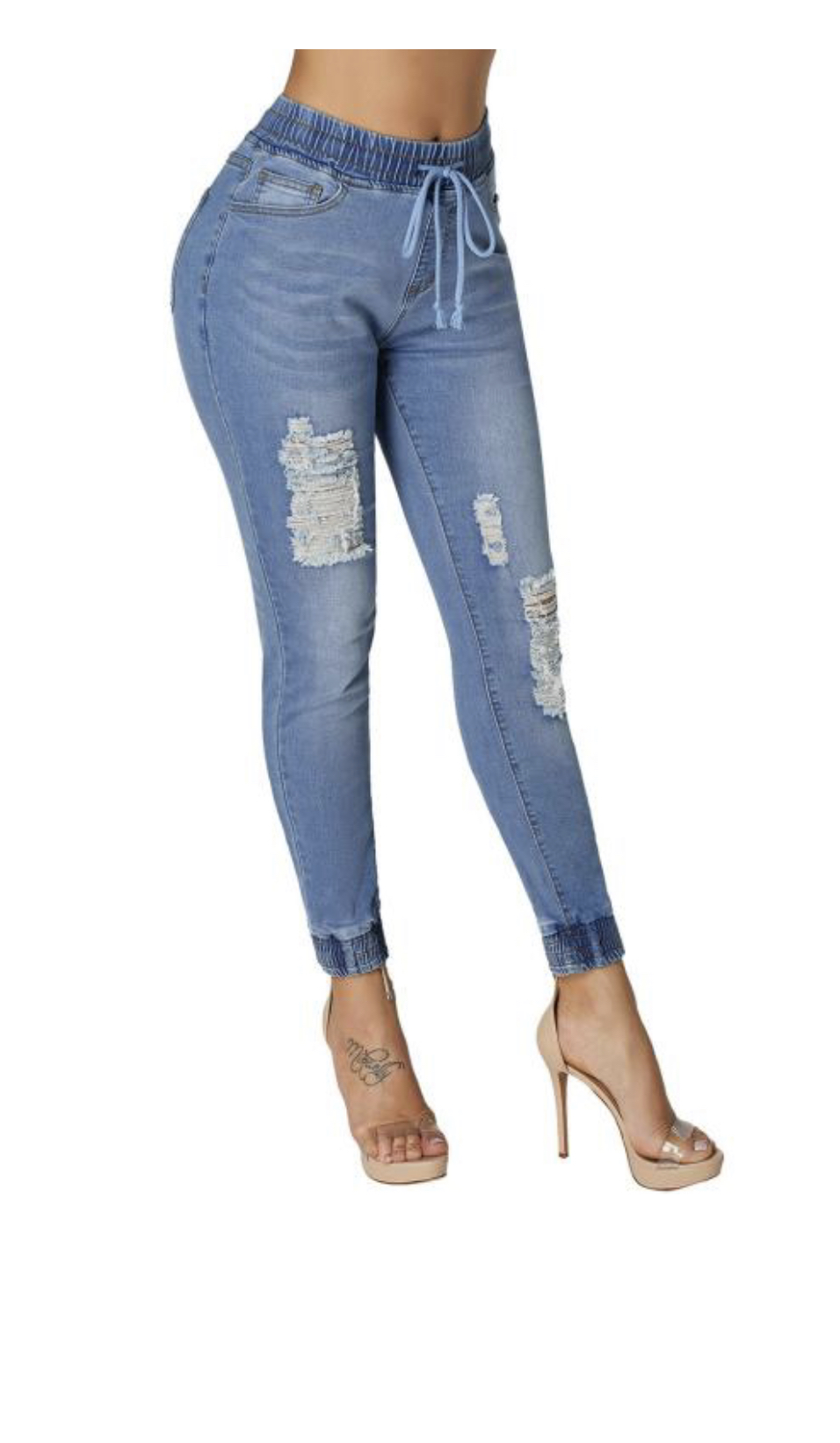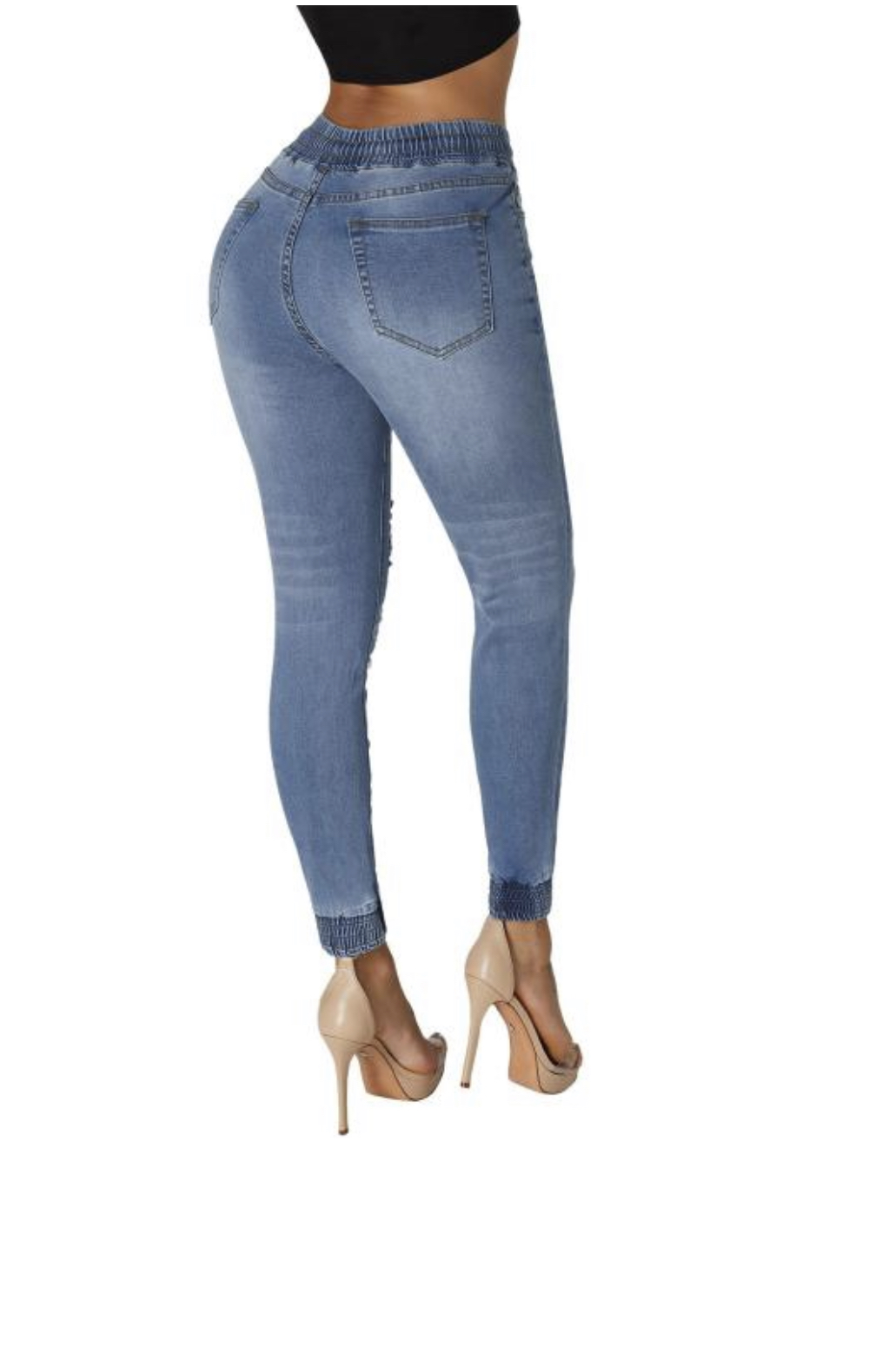 These Jogger style denim pants are made with a comfy loose fit finish, with ripped front detail & elastic cuffs.