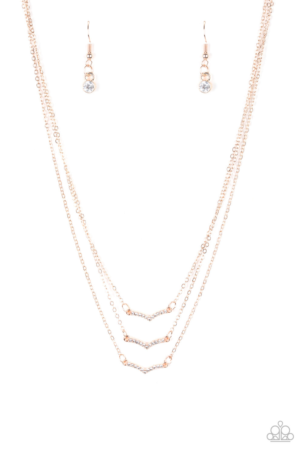 Encrusted in glassy white rhinestones, three dainty rose gold frames layer below the collar for a classic look. Features an adjustable clasp closure.